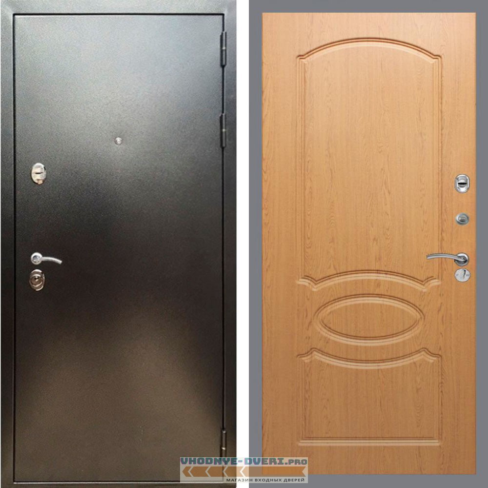 Входная дверь REX (Рекс) 5 (антик серебро) ФЛ-128 Дуб светлый