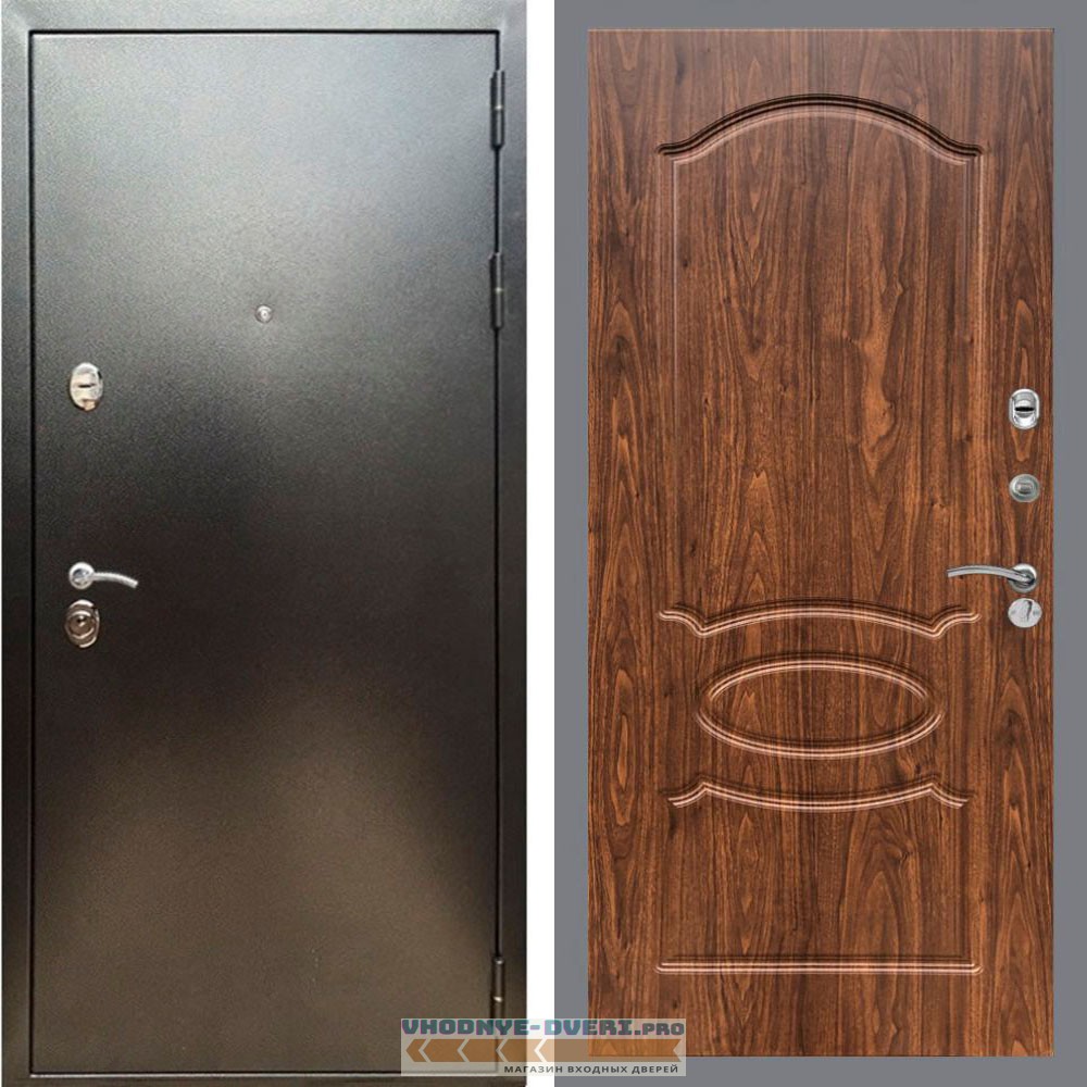 Входная дверь REX (Рекс) 5 (антик серебро) ФЛ-128 Орех темный