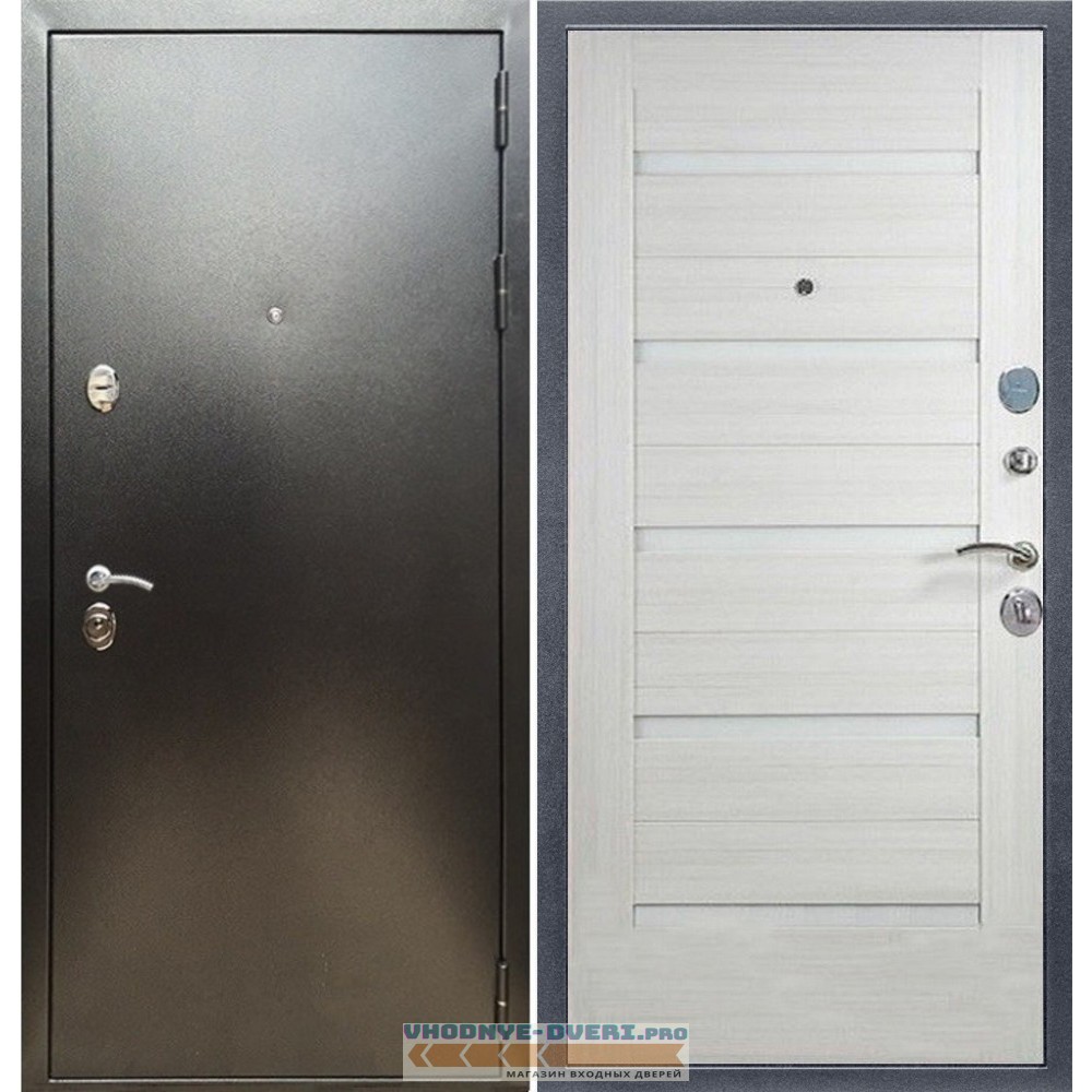 Входная дверь REX (Рекс) 5 (антик серебро) сб-14 лиственница беж. белое стекло