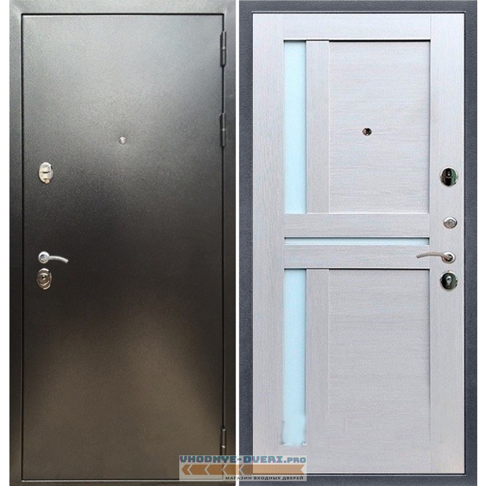 Входная дверь REX (Рекс) 5 (антик серебро) сб-18 лиственница бежевая белое стекло