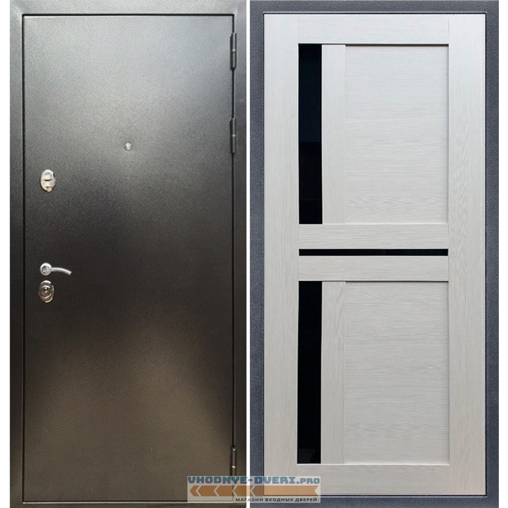 Входная дверь REX (Рекс) 5 (антик серебро) сб-18 лиственница бежевая черное стекло