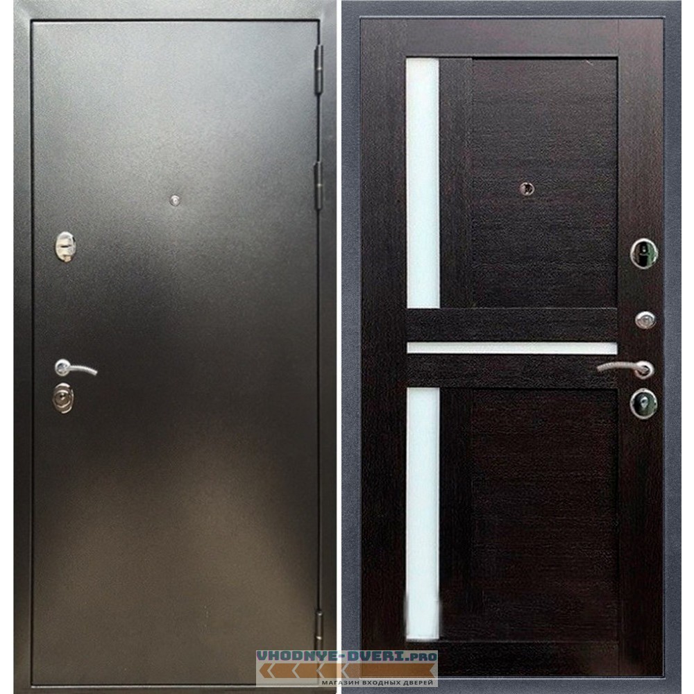 Входная дверь REX (Рекс) 5 (антик серебро) сб-18 венге белое стекло