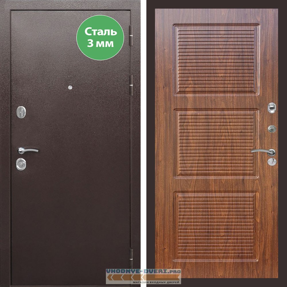 Входная дверь REX (Рекс) 5 металл 3мм медный антик ФЛ-1 мореная берёза