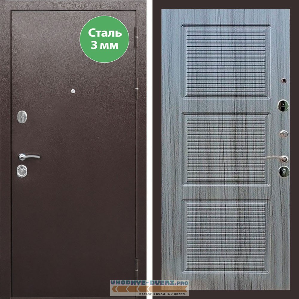 Входная дверь REX (Рекс) 5 металл 3мм медный антик ФЛ-1 сандал серый