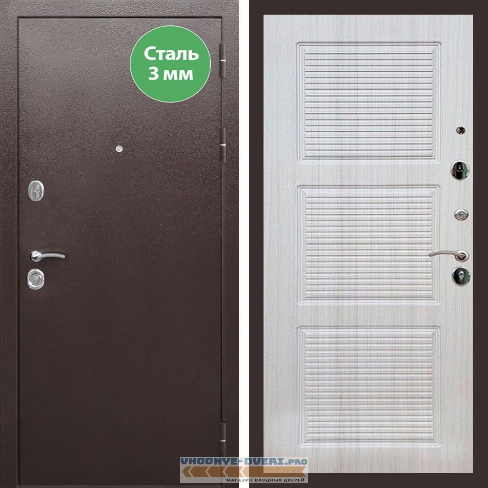 Входная дверь REX (Рекс) 5 металл 3мм медный антик ФЛ-1 Сандал светлый