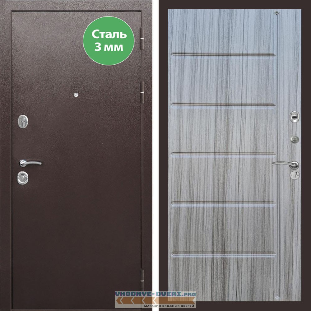 Входная дверь REX (Рекс) 5 металл 3мм медный антик ФЛ-102 Сандал серый