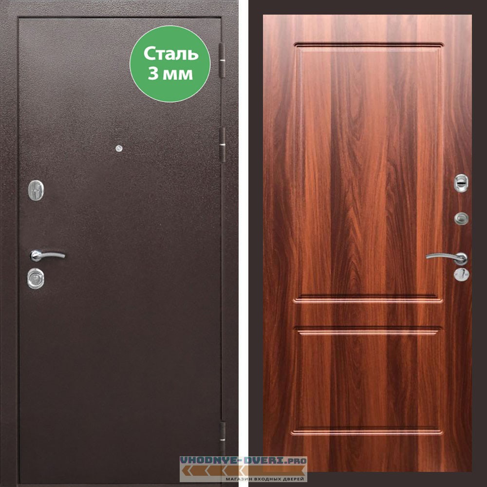 Входная дверь REX (Рекс) 5 металл 3мм медный антик ФЛ-117 итальянский орех