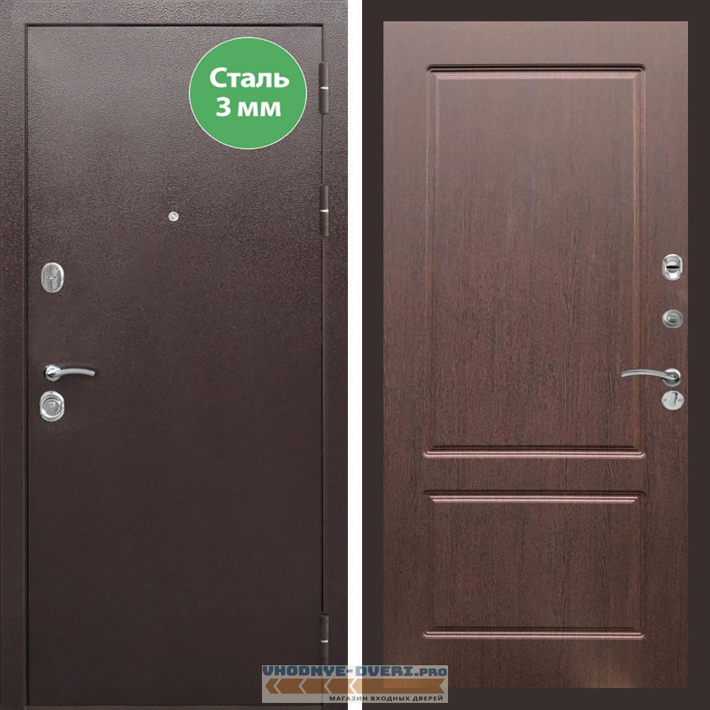 Входная дверь REX (Рекс) 5 металл 3мм медный антик ФЛ-117 орех премиум