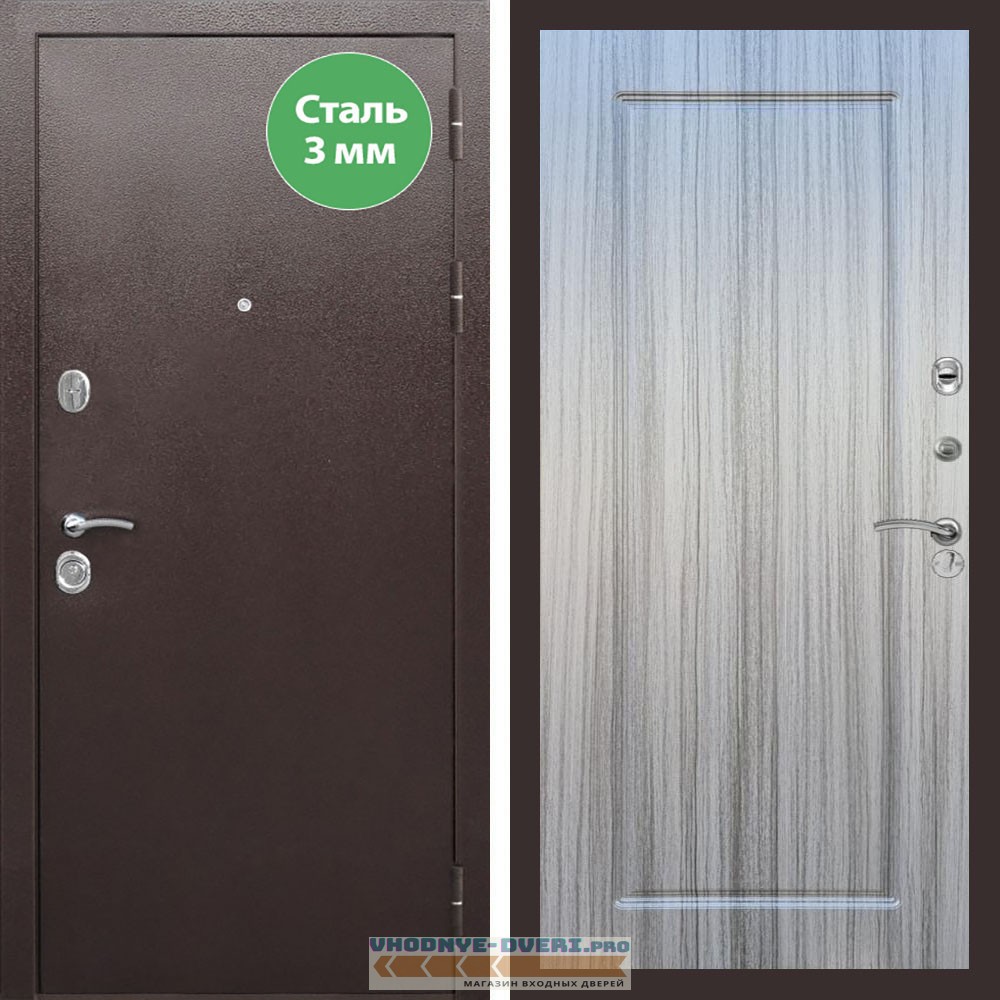 Входная дверь REX (Рекс) 5 металл 3мм медный антик ФЛ-119 Сандал серый