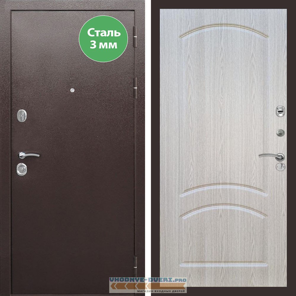 Входная дверь REX (Рекс) 5 металл 3мм медный антик ФЛ-126 Беленый дуб