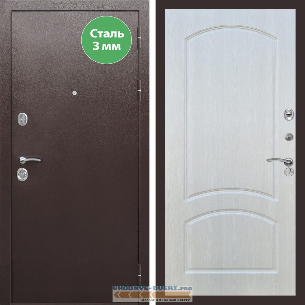 Входная дверь REX (Рекс) 5 металл 3мм медный антик ФЛ-126 Лиственница бежевая