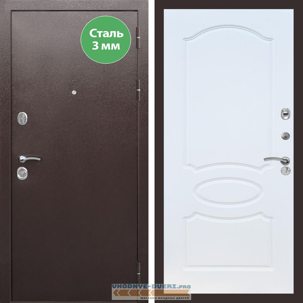 Входная дверь REX (Рекс) 5 металл 3мм медный антик ФЛ-128 белый ясень