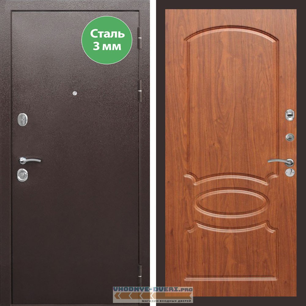 Входная дверь REX (Рекс) 5 металл 3мм медный антик ФЛ-128 мореная береза