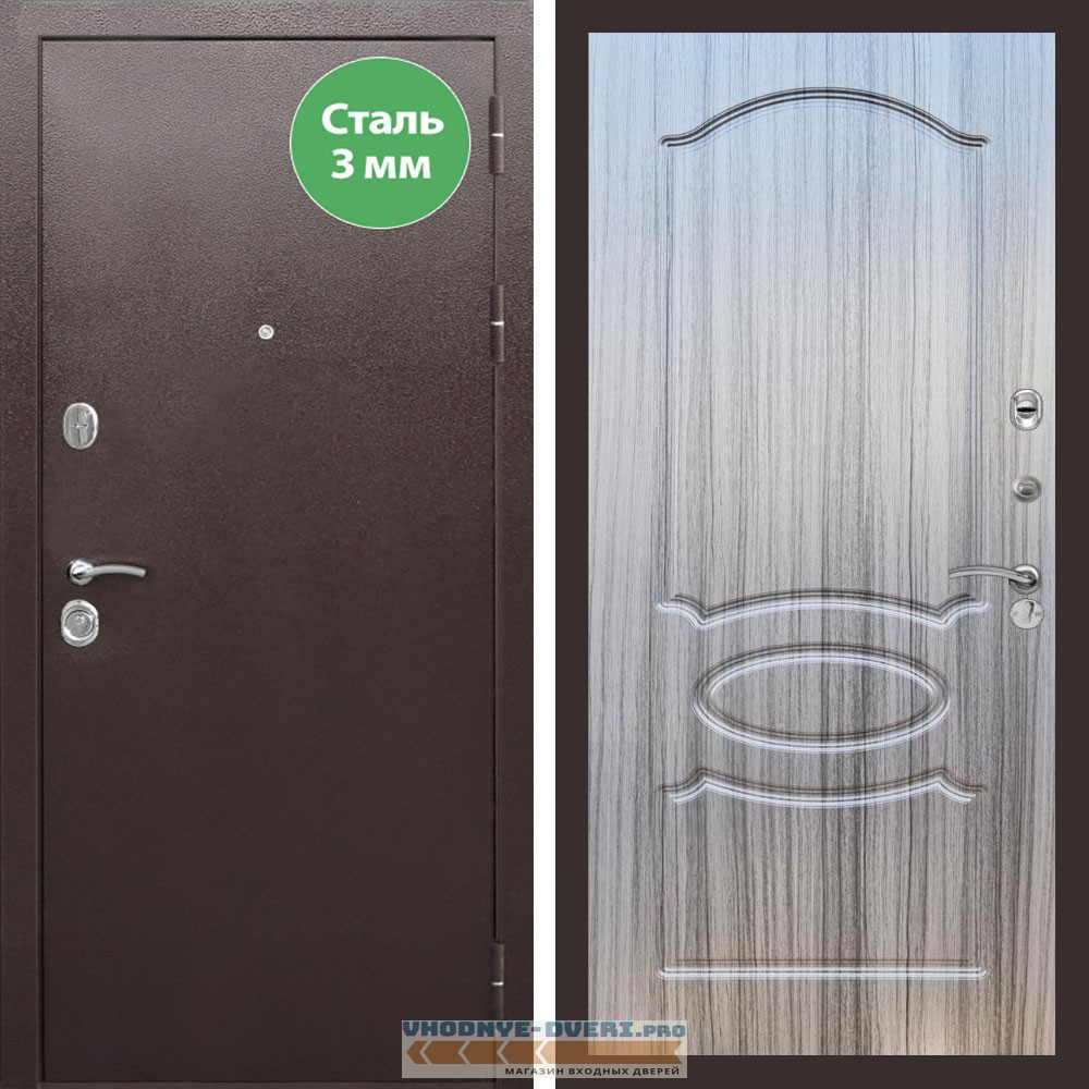 Входная дверь REX (Рекс) 5 металл 3мм медный антик ФЛ-128 Сандал серый