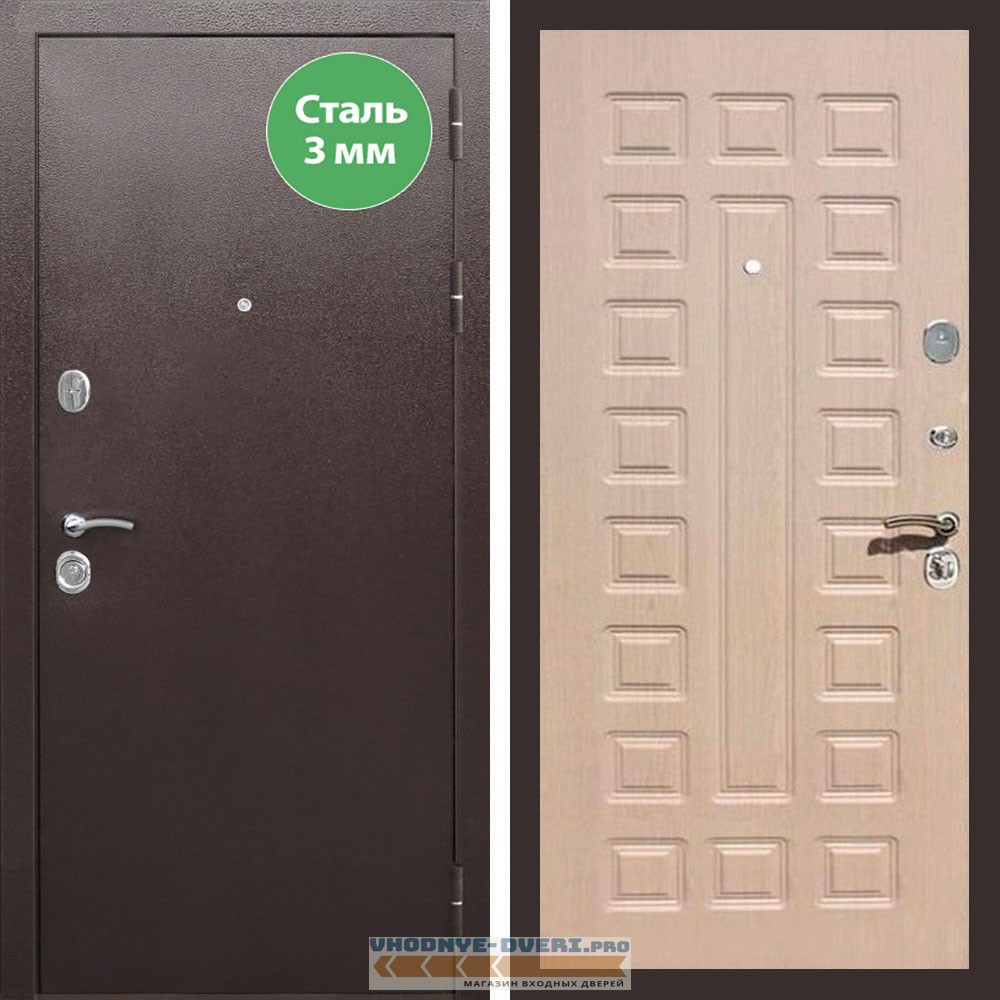 Входная дверь REX (Рекс) 5 металл 3мм медный антик ФЛ-183 беленый дуб