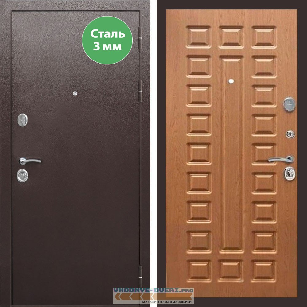 Входная дверь REX (Рекс) 5 металл 3мм медный антик ФЛ-183 орех темный