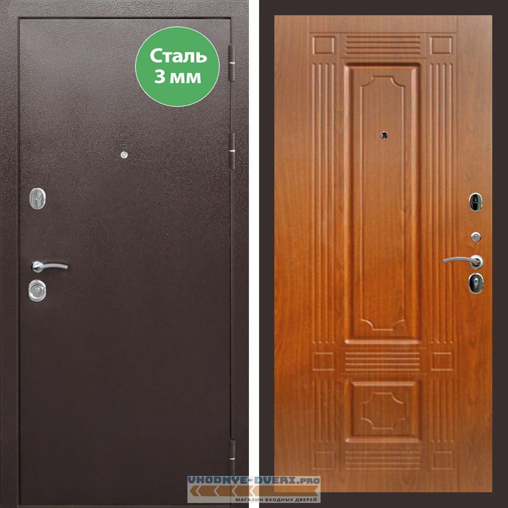 Входная дверь REX (Рекс) 5 металл 3мм медный антик ФЛ-2 мореная береза 16мм