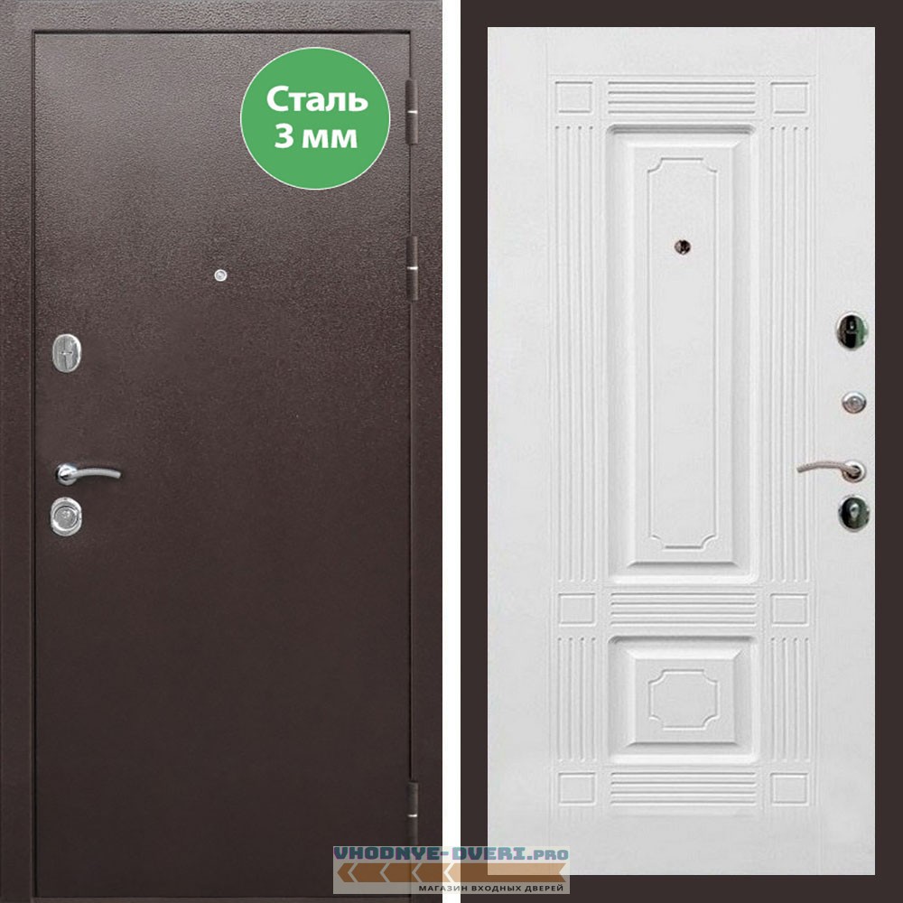 Входная дверь REX (Рекс) 5 металл 3мм медный антик ФЛ-2 ясень белый 16 мм