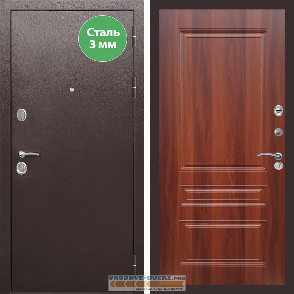 Входная дверь REX (Рекс) 5 металл 3мм медный антик ФЛ-243 итальянский орех