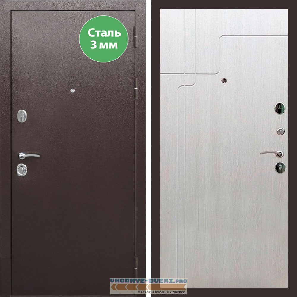 Входная дверь REX (Рекс) 5 металл 3мм медный антик ФЛ-246 лиственница беж