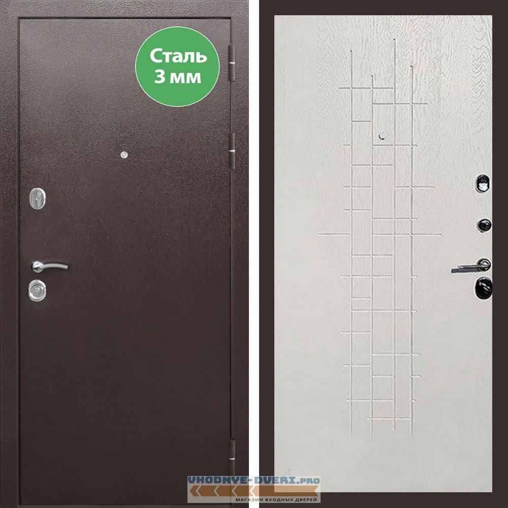 Входная дверь REX (Рекс) 5 металл 3мм медный антик ФЛ-289 Белый ясень