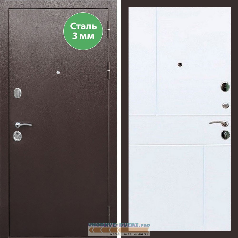 Входная дверь REX (Рекс) 5 металл 3мм медный антик ФЛ-290 белый матовый