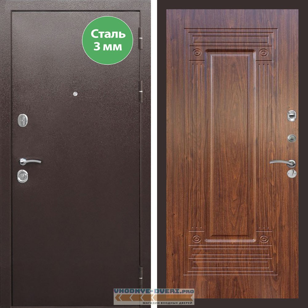 Входная дверь REX (Рекс) 5 металл 3мм медный антик ФЛ-4 мореная берёза