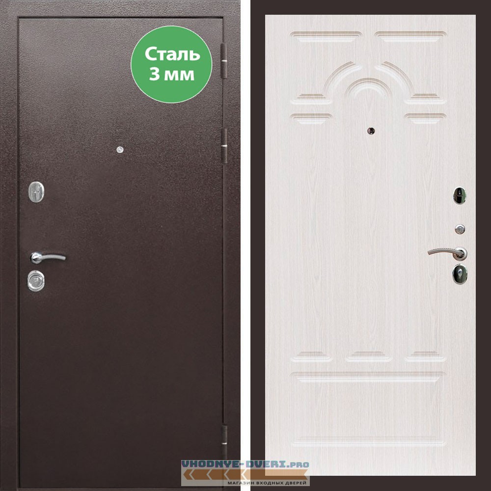 Входная дверь REX (Рекс) 5 металл 3мм медный антик ФЛ-58 Беленый дуб