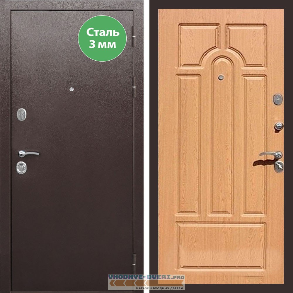 Входная дверь REX (Рекс) 5 металл 3мм медный антик ФЛ-58 дуб светлый
