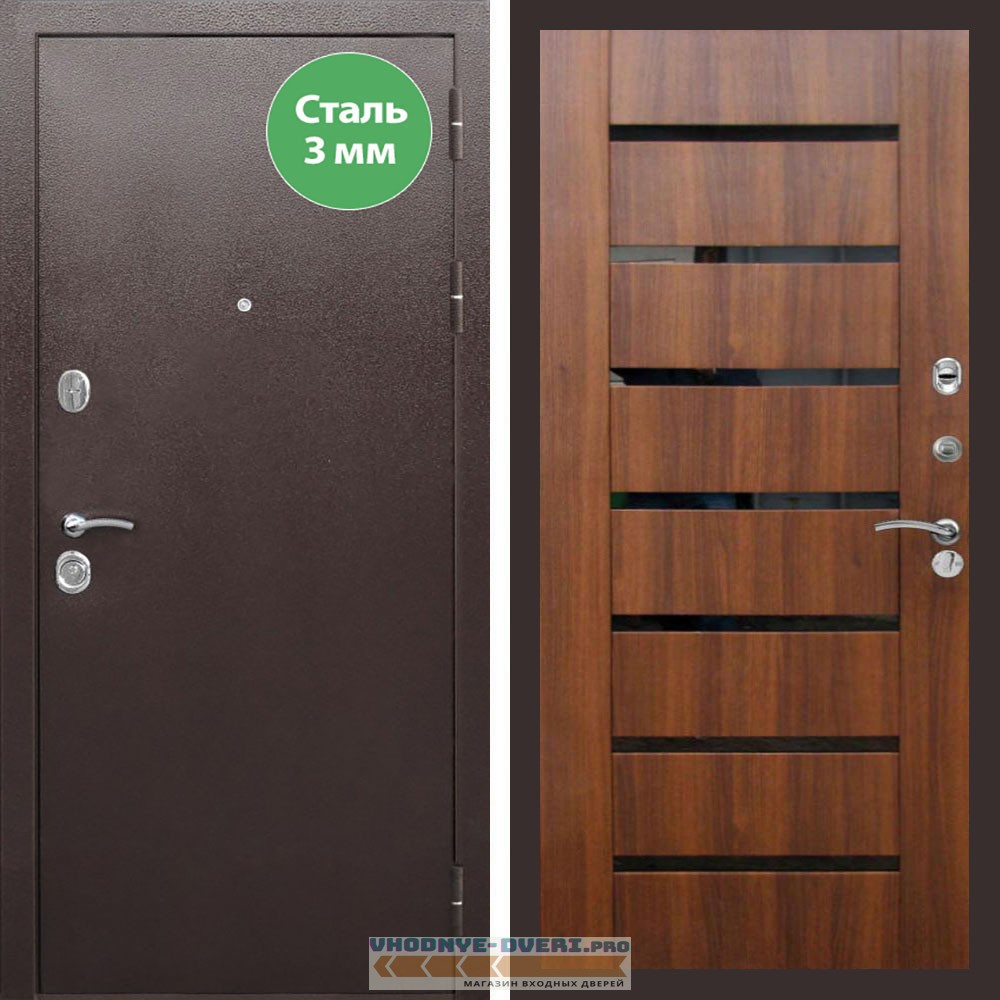 Входная дверь REX (Рекс) 5 металл 3мм медный антик СБ-14 Орех бренди стекло черное