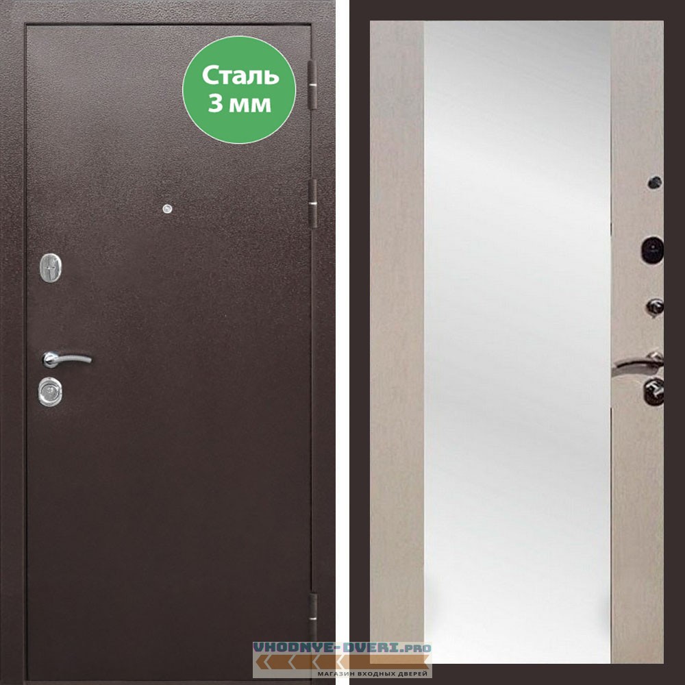 Входная дверь REX (Рекс) 5 металл 3мм медный антик сб-16 лиственница бежевая