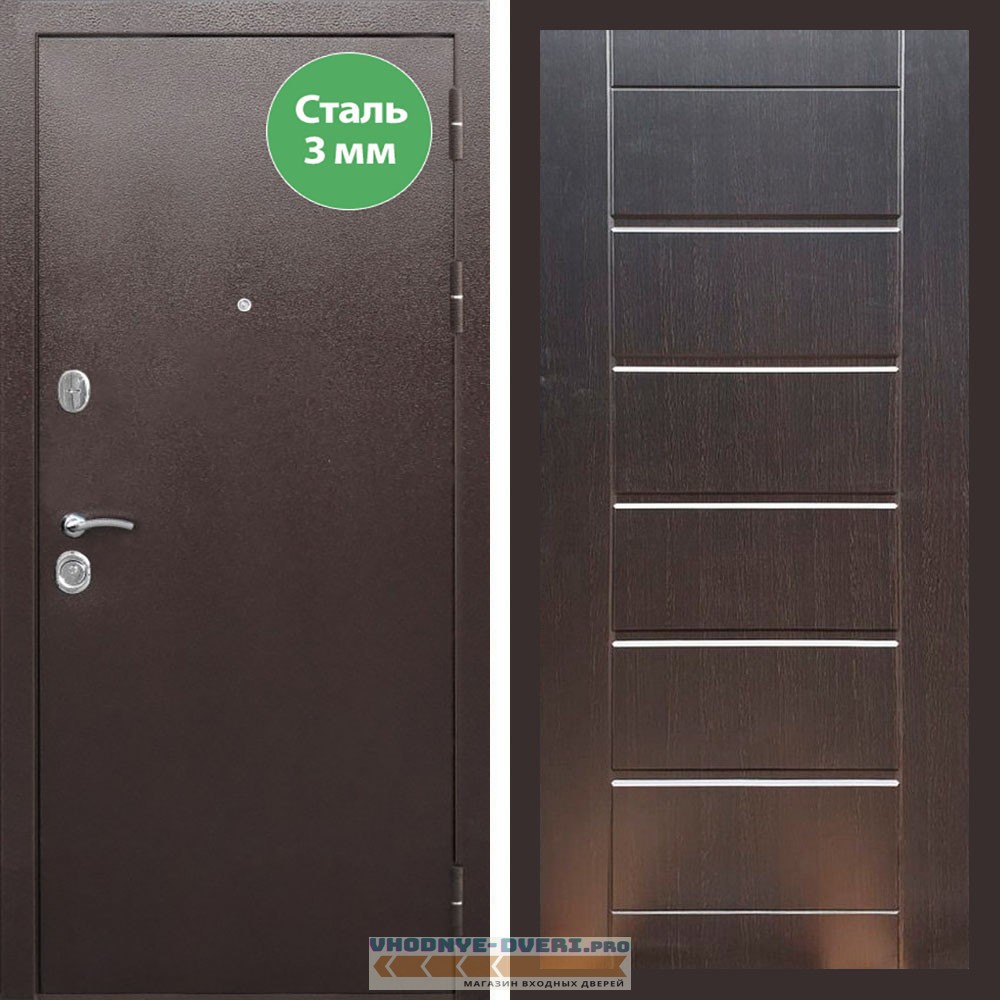 Входная дверь REX (Рекс) 5 металл 3мм медный антик сити 16 мм венге
