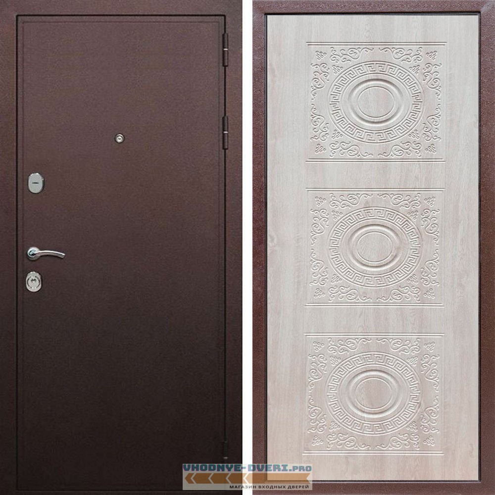 Входная дверь REX (Рекс) 5А Медный антик д-18 сосна белая