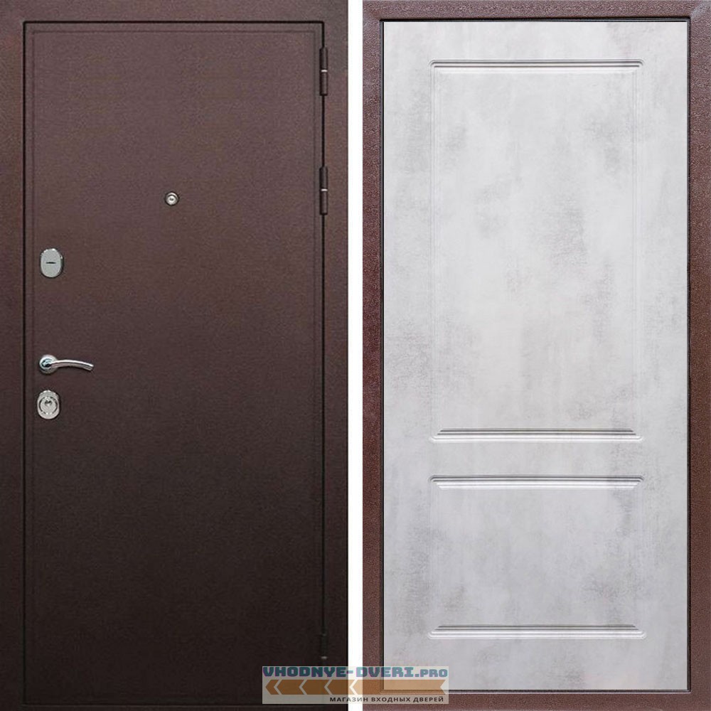 Входная дверь REX (Рекс) 5А Медный антик ФЛ-117 бетон светлый