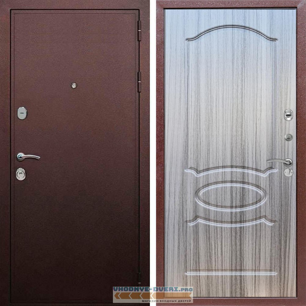 Входная дверь REX (Рекс) 5А Медный антик ФЛ-128 Сандал серый