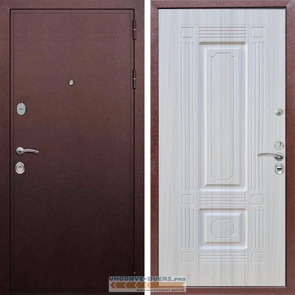 Входная дверь REX (Рекс) 5А Медный антик ФЛ-2 Сандал белый