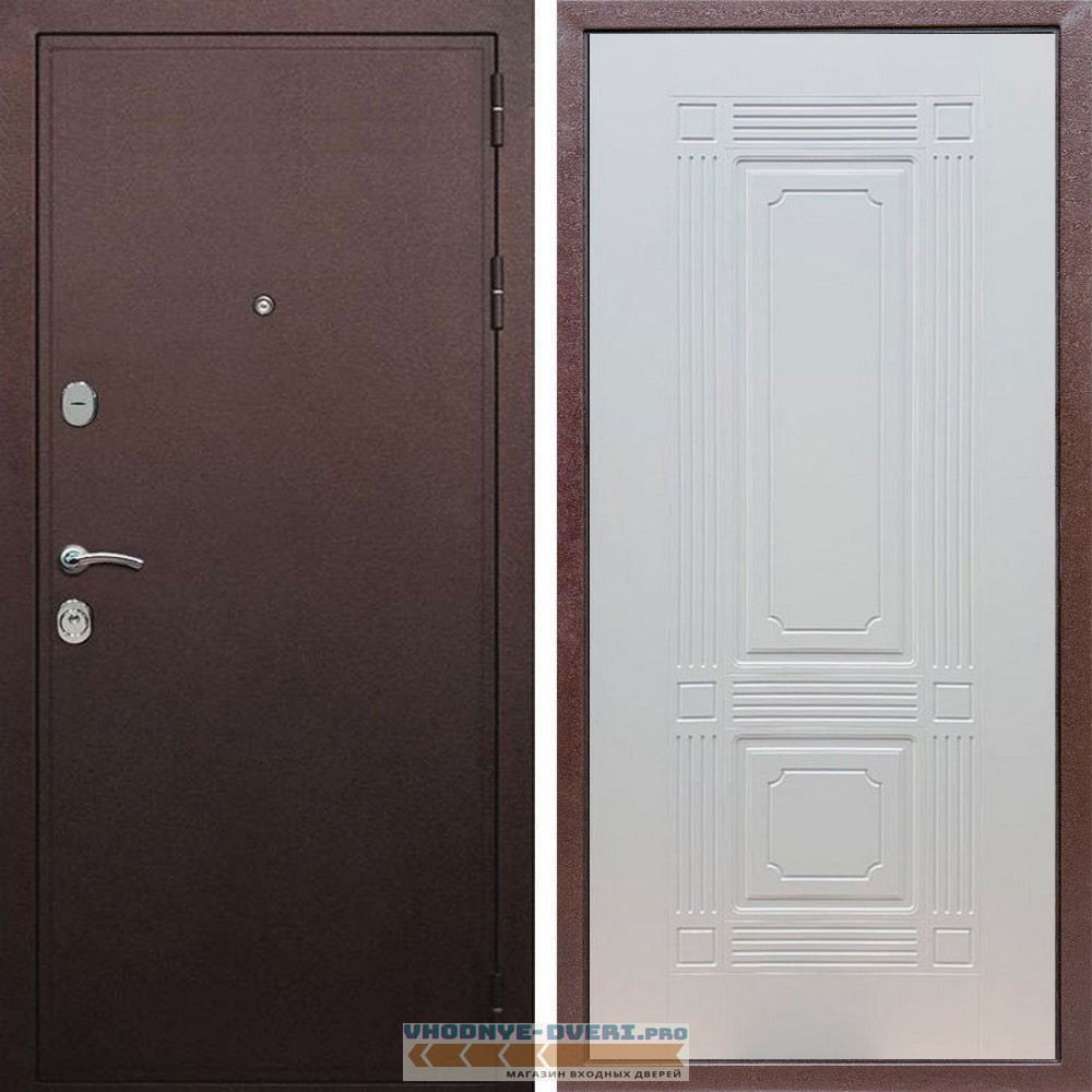 Входная дверь REX (Рекс) 5А Медный антик ФЛ-2 ясень белый 6 мм
