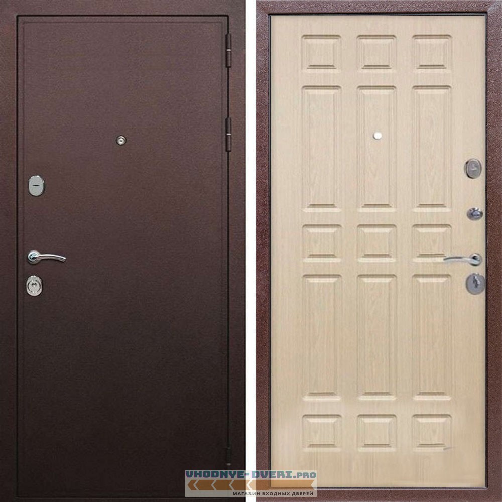 Входная дверь REX (Рекс) 5А Медный антик ФЛ-33 беленый дуб