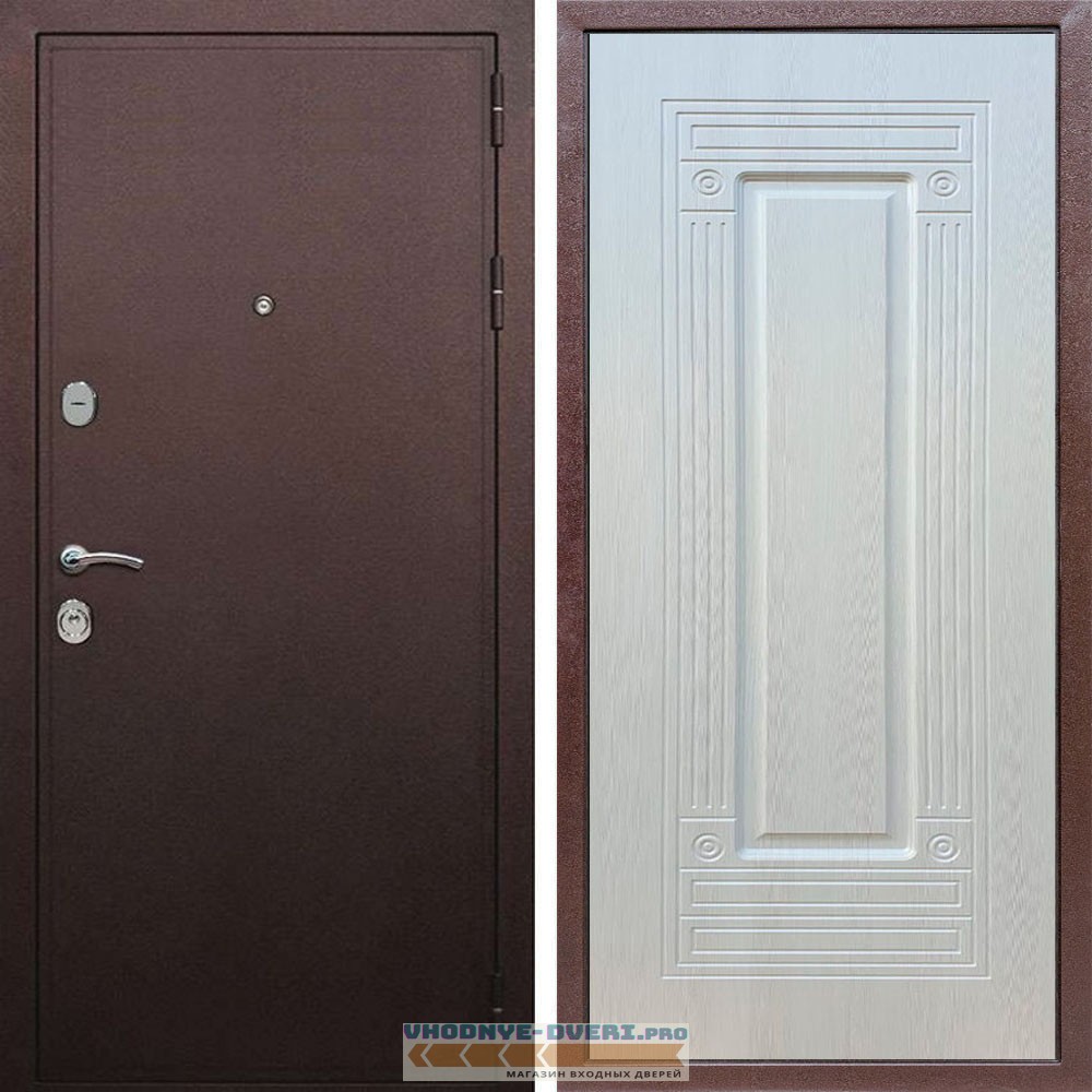 Входная дверь REX (Рекс) 5А Медный антик ФЛ-4 ясень белый