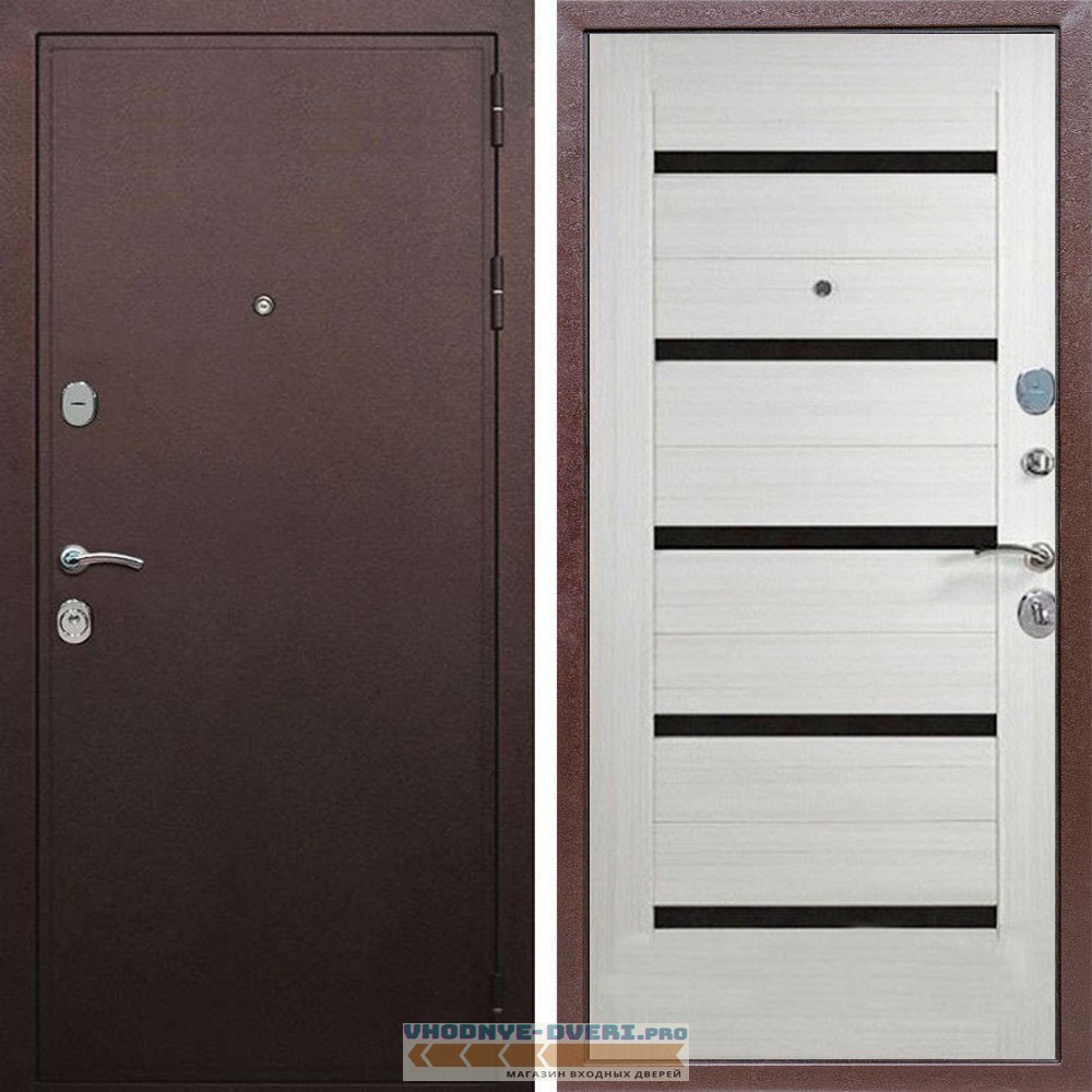 Входная дверь REX (Рекс) 5А Медный антик сб-14 лиственница беж. черное стекло