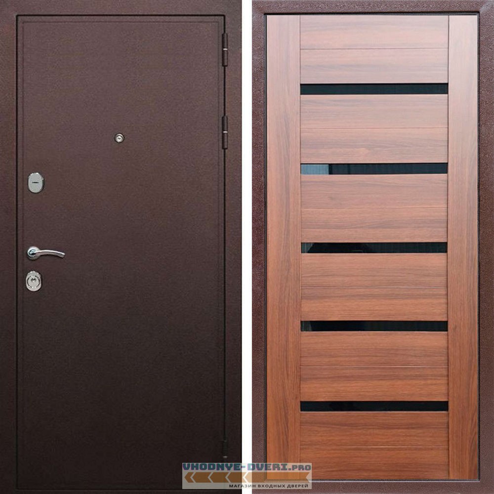 Входная дверь REX (Рекс) 5А Медный антик СБ-14 Орех бренди стекло черное