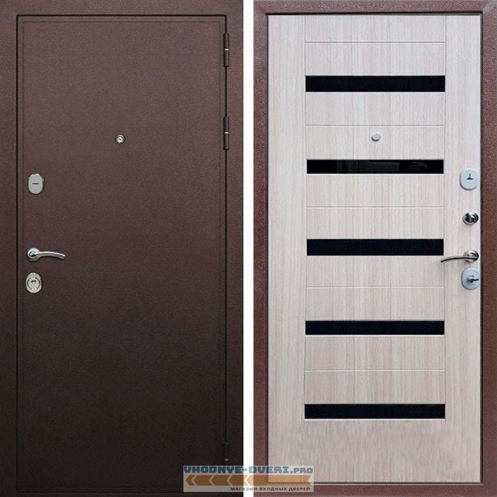 Входная дверь REX (Рекс) 5А Медный антик СБ-14 сандал светлый черное стекло
