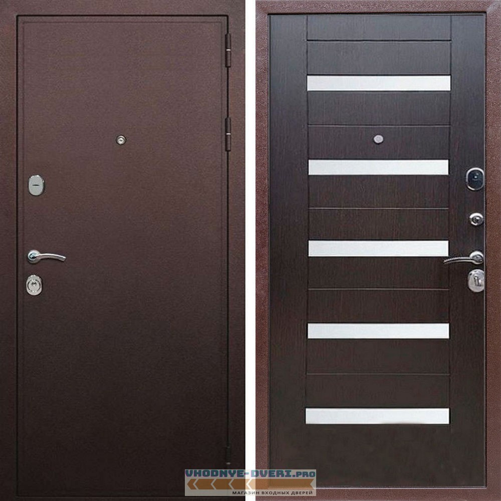 Входная дверь REX (Рекс) 5А Медный антик сб-14 венге белое стекло