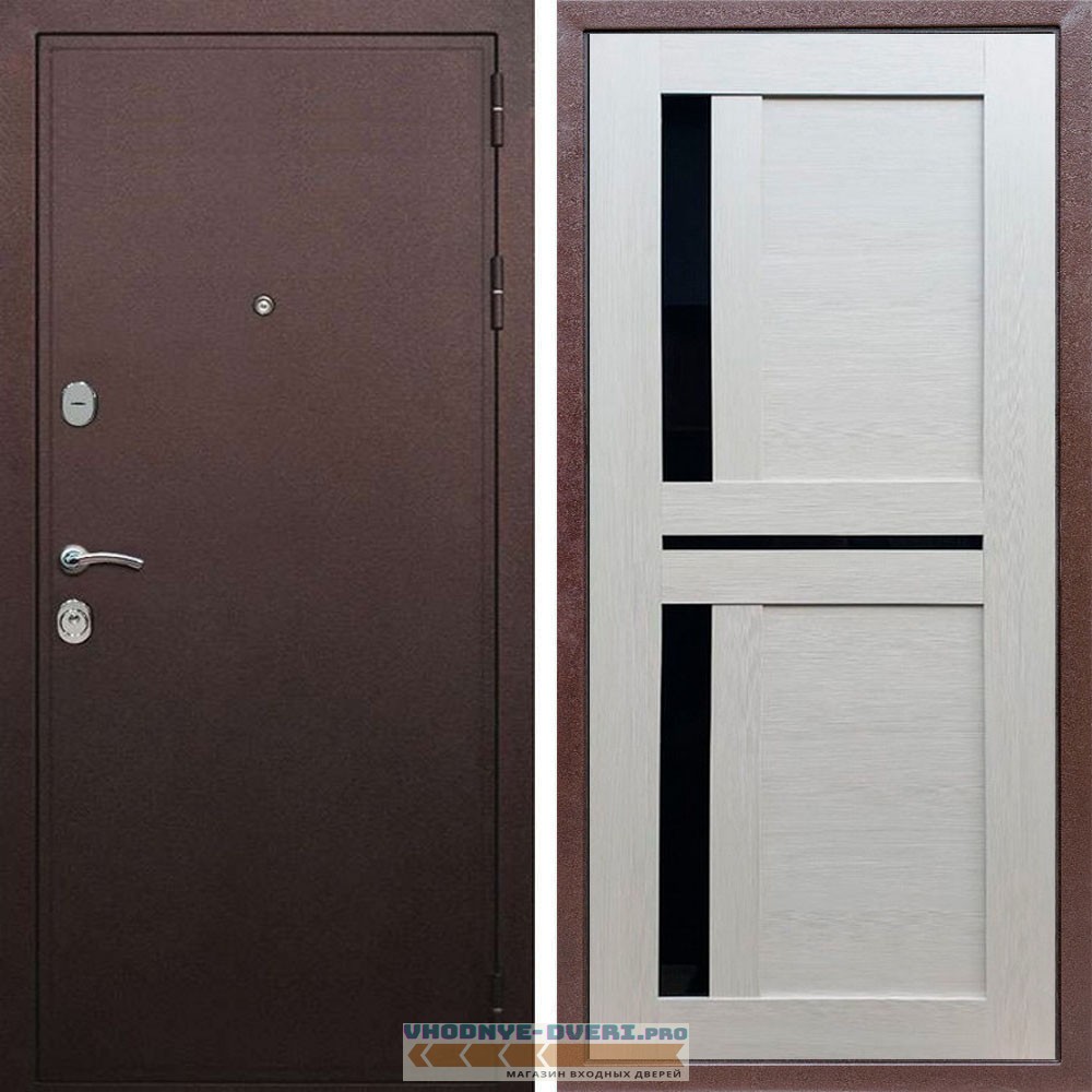 Входная дверь REX (Рекс) 5А Медный антик сб-18 лиственница бежевая черное стекло