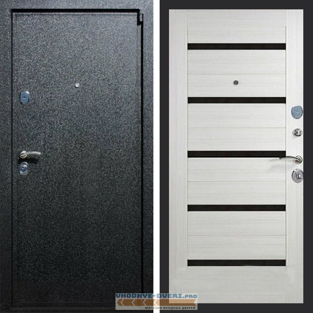 Входная дверь REX (Рекс) 3 Черный крокодил сб-14 лиственница беж. черное стекло