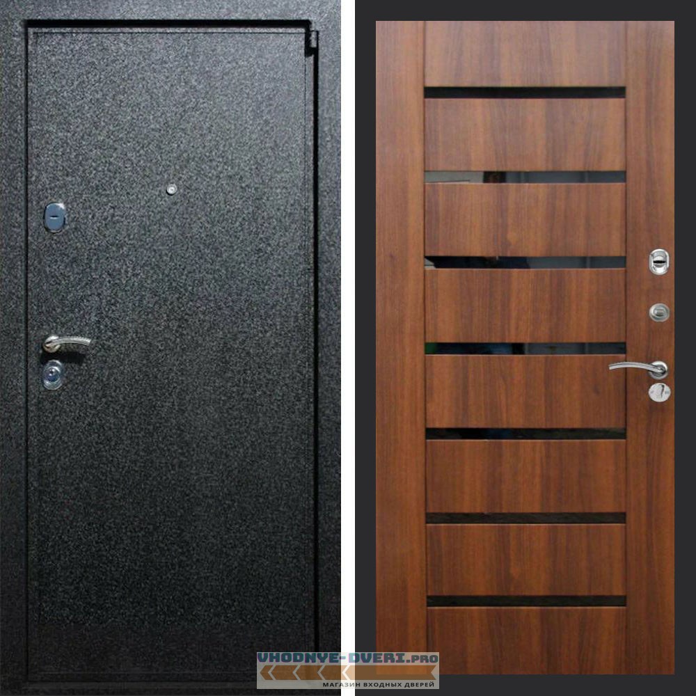 Входная дверь REX (Рекс) 3 Черный крокодил СБ-14 Орех бренди стекло черное
