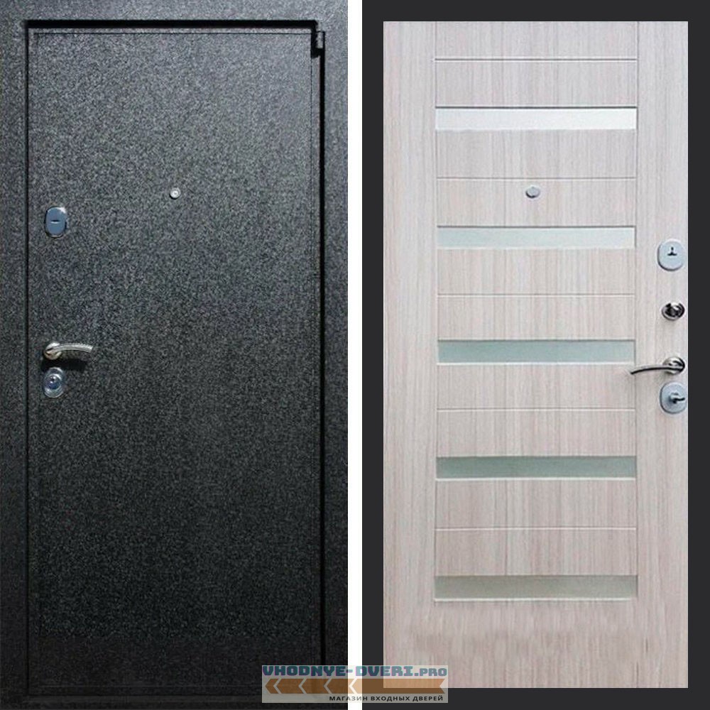 Входная дверь REX (Рекс) 3 Черный крокодил СБ-14 сандал светлый белое стекло