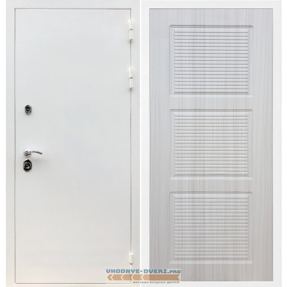 Входная дверь REX (Рекс) 5 белая шагрень ФЛ-1 беленый дуб