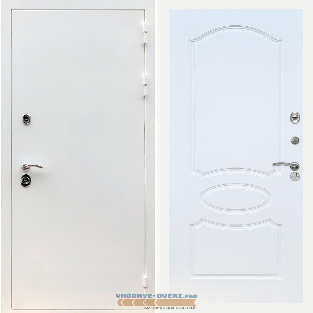 Входная дверь REX (Рекс) 5 белая шагрень ФЛ-128 белый ясень