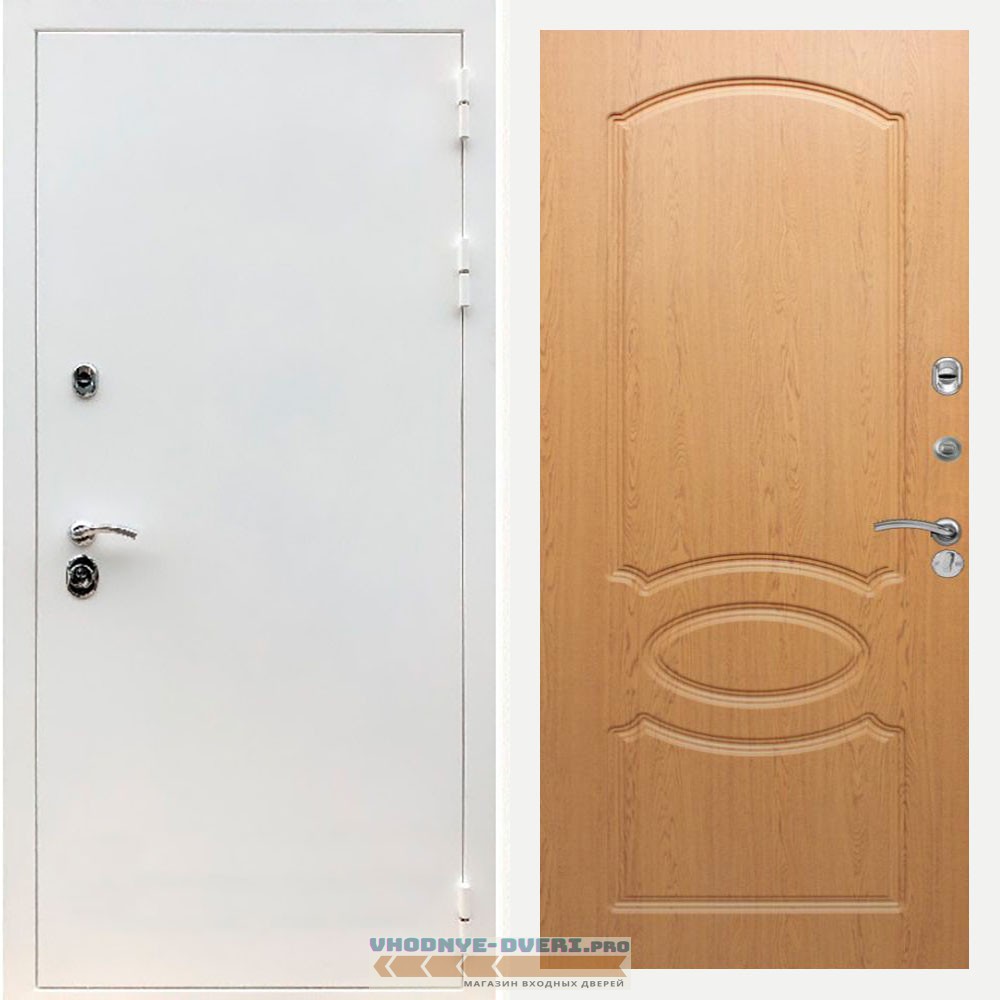 Входная дверь REX (Рекс) 5 белая шагрень ФЛ-128 Дуб светлый